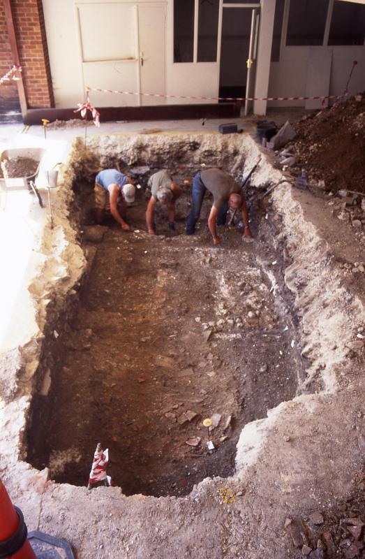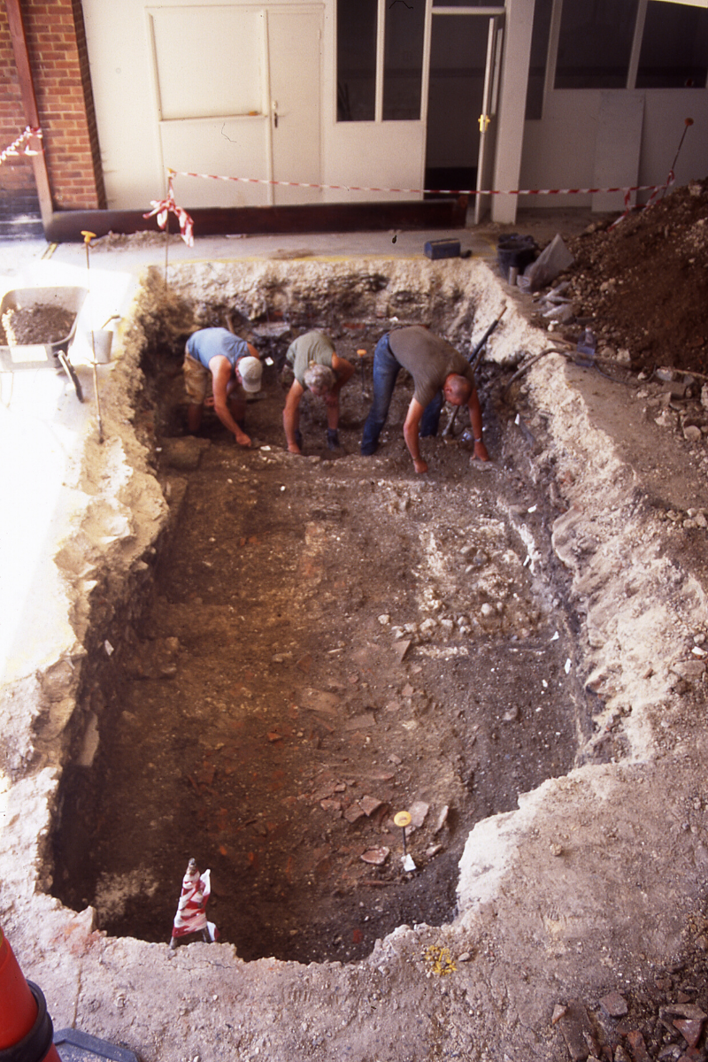 The foundations were extended in the 15th - 16th century with a brick and tile hearth placed in one corner of the room. This change of location, from the centre to the edge of the room and the introduction of bricks in construction, is a pattern that is also repeated at this time in other houses in Salisbury. It marks the introduction of chimneys and shows how, despite the evidence being vague, we can apply information gleaned from other sites to make plausible reconstructions elsewhere. Subsequent modifications were made in the 17th and 18th centuries.
