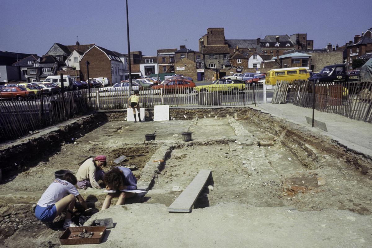 A succession of often discontinuous floor layers suggested that the interior had been repaired rather than renewed on several occasions. A silver penny of Edward I (1272-1307) or Edward II (1307-1327), a period which probably saw completion of the cathedral spire, was found in one of the earliest layers. Successive floors containing 14th-15th century pottery showed that occupation continued unbroken throughout the 14th century. Most of the external wall foundations lay outside the limits of the trench, which made it impossible to reconstruct the ground-plan of these medieval buildings; however, we can conjecture that they were similar to adjoining properties in Brown Street, which we will visit next week, and to those we saw at the Anchor Brewery in Gigant Street.