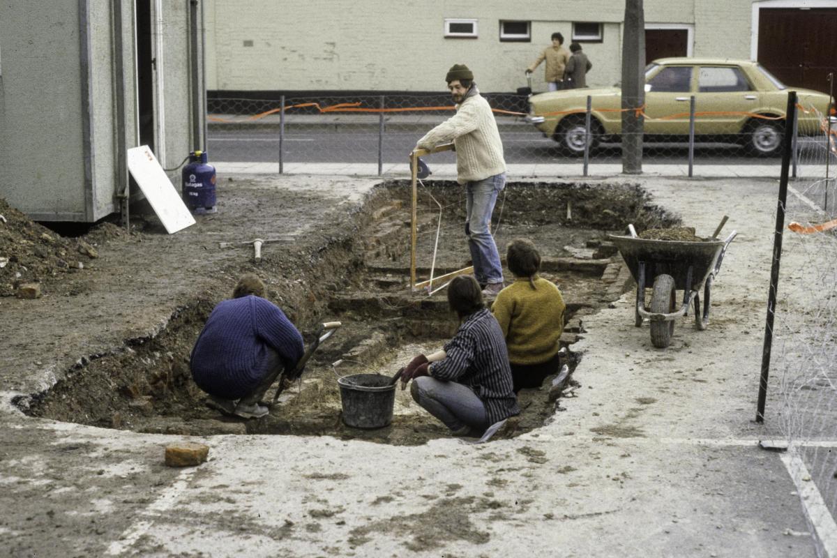 Further down the street at 8-10 St. Ann’s Street (WA Project 30182) – W116 two small trenches were excavated behind the street frontage and adjacent to an extant 14th century house. The results were limited however post holes and floor levels suggested that former rudimentary buildings had once stood on the site. The layers were poorly dated but sufficiently interesting to confirm the value of exploring areas beyond the city centre into the urban margins.