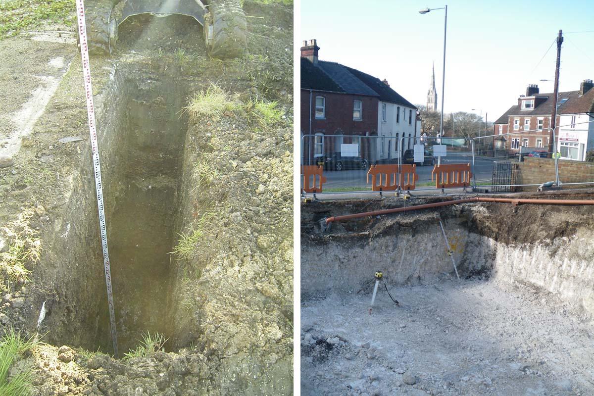 Excavations at The Stone Mason’s Yard, 10 Tollgate Road (left) and (Tollgate Road and Fowler’s Hill) right