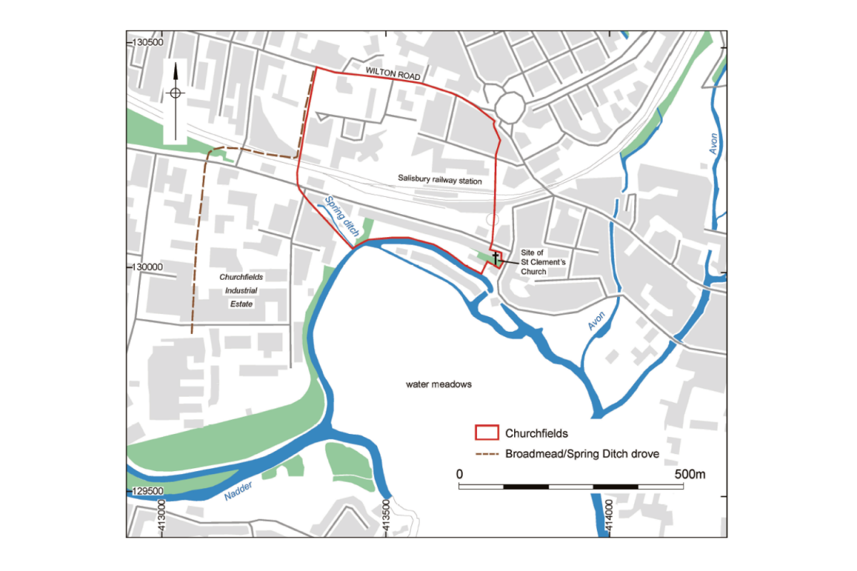 The location of Churchfields in Salisbury