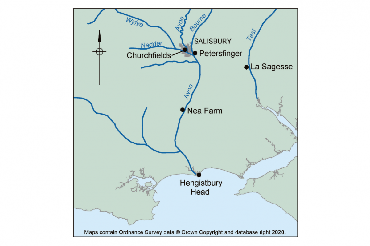 Such a discovery has immense importance; sites of this period are known from only two other locations in the Avon valley, at Hengistbury Head, Dorset and at a site, Nea Farm, near Ringwood, Hampshire, although another possible site has been noted at Petersfinger. In the River Test valley, a site of the same age has been found at La Sagesse, Romsey. The additional information we can learn from the rediscovery of the collection from Churchfields helps to illustrate the lifestyle of these early occupants of the area. We can appreciate that, just like the Mesolithic people, they lived and moved along the river valleys, possibly keeping to the slightly drier conditions provided by low terraces, which are found along the flanks of the floodplain. We can envisage that Churchfields provided an ideal stopping-off point, not only located where the River Avon joined the River Nadder but also within reach of the other rivers, allowing travel options in numerous directions.