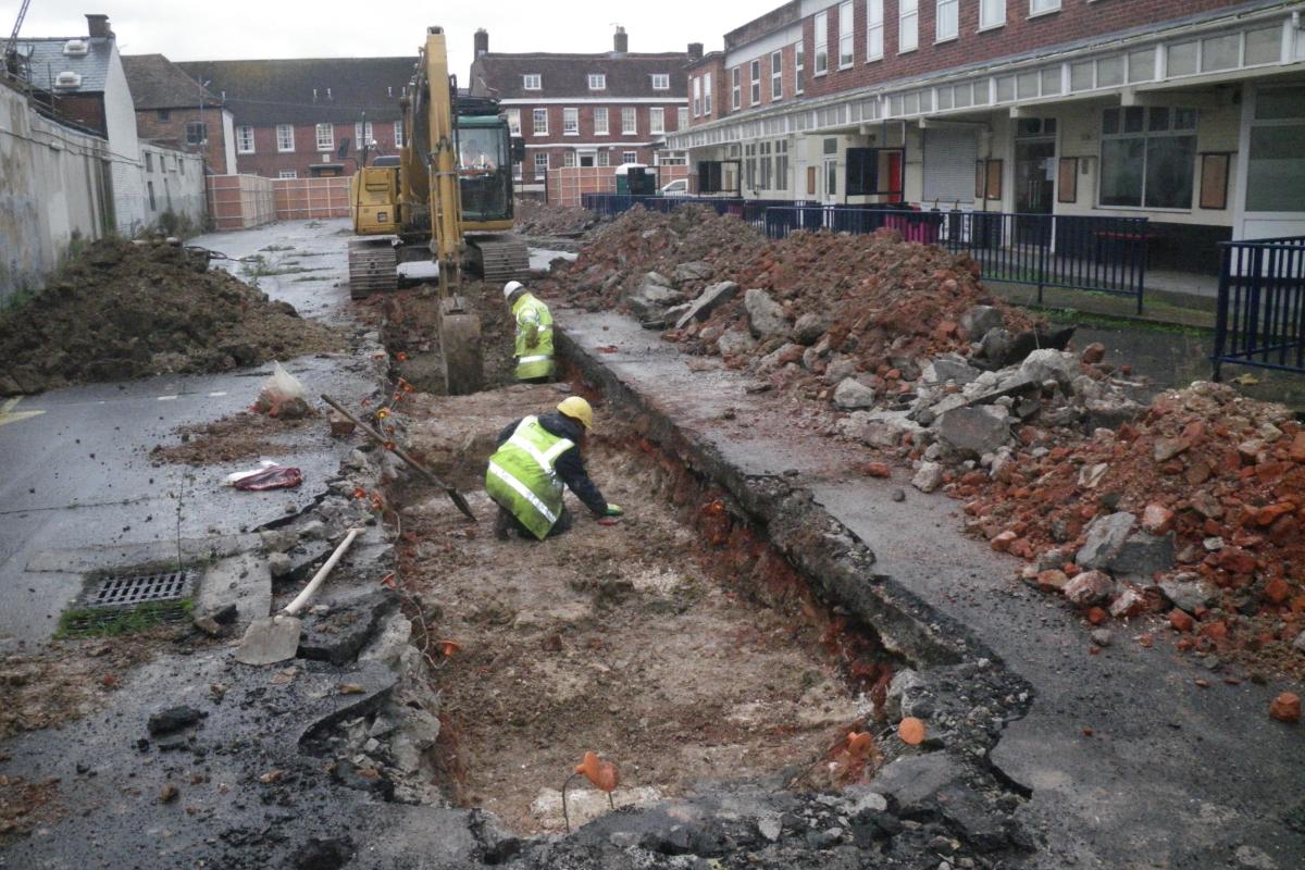 The site, which had been the former Salisbury Bus Station, extended across the full width of the chequer and occupied two medieval tenement blocks, 8 and 10, on Endless Street and three, 13, 15 and 17, on Rollestone Street. When the bus station was closed the land was sold for redevelopment as retirement homes. Most of the site was taken up by parking bays and it was believed that only one other building had occupied the Endless Street frontage following the demolition of the medieval buildings and the construction of the bus station. The project therefore offered a rare opportunity to examine potentially well preserved archaeological layers near the economic hub of the medieval city.