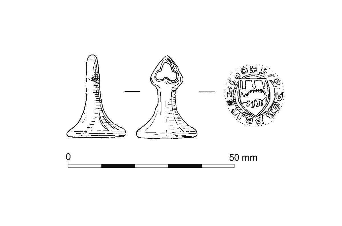 Most excavations produce individual finds that attract interest; Vanner’s Chequer was no exception. It included a 14th century seal matrix which, by its design, was probably a personal possession of a French or Norman heraldic gentleman who was visiting Salisbury.