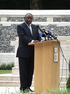 The ceremony on Sunday was officiated by the South African Deputy President Cyril Ramaphosa. The centrepiece was the re-interment of Beleza Myengwa of the Labour Corps at Delville Wood. This is intended as an acknowledgment of the sacrifices made by non-white South Africans during World War 1 and to act as a symbol of reconciliation and nation building.