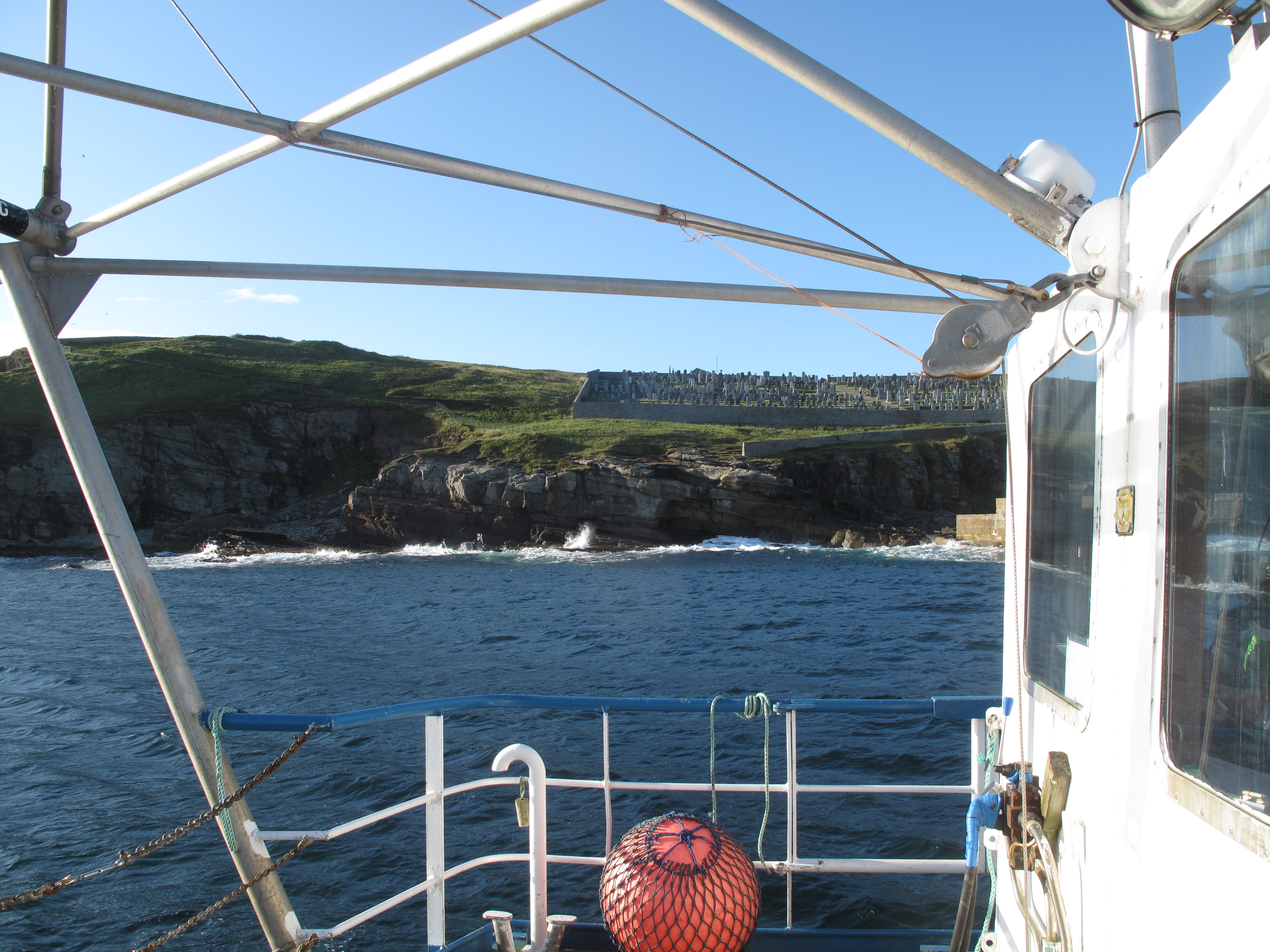 Collecting the data on the boat could be a challenge, particularly when we surveyed wrecks close to the coastline. For example we surveyed the Wrangels Palais, a sailing ship which ran aground in dense fog in 1687 on the Out Skerries. Its proximity to the cliffs meant that even though the sea was not rough there were still large waves breaking on the rocky cliffs alongside us.