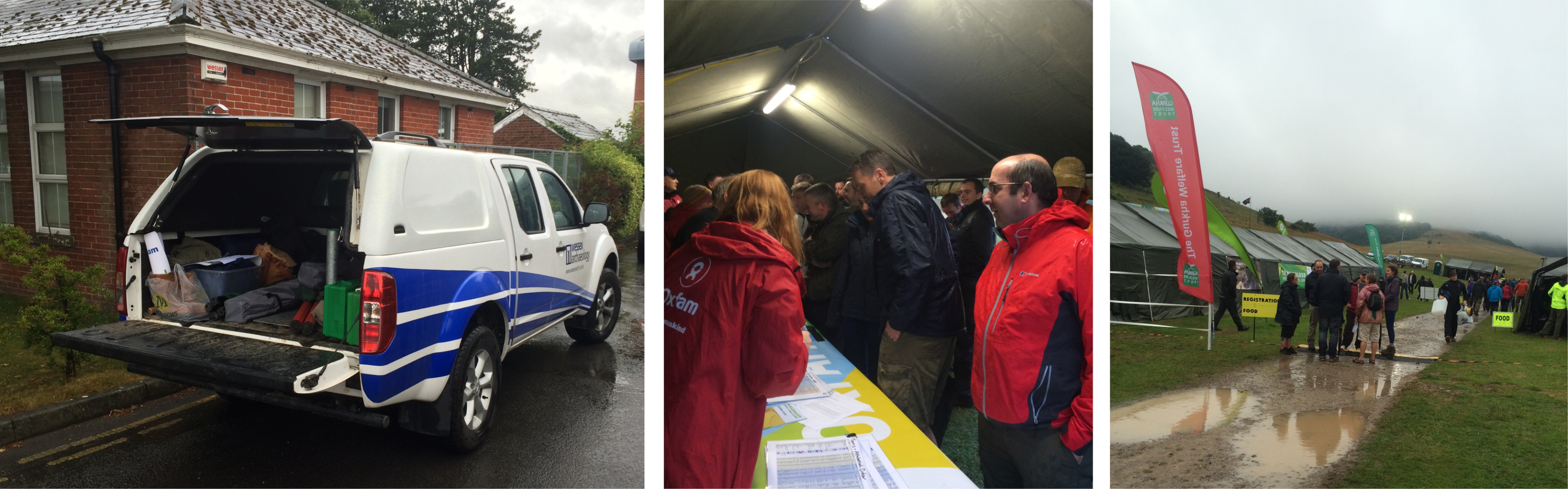 So, the trucks were loaded in Rochester and Salisbury, and our intrepid band of Trailwalkers Mark, Dave, Susan and Vi, supported by our Chief Executive Chris alongside Lisa, Rob and Andy, have rendezvoused at the Queen Elizabeth Country Park start point and registered, alarmingly filling in next of kin forms. They then enjoyed an excellent complimentary carb-loading pasta tea courtesy of the Gurkhas. The organisation is second to none, even in some atrocious weather, but we are reassured the weather will be much improved for the team’s 7am start (ouch!) today. Sponsorship continues to flood in, with nearly £2.5k raised so far. This includes some fantastic generosity from, amongst many others, Opti-cal Survey Equipment, our strategic partners Thomson Ecology and the Scottish Universities Environmental Research Centre (SUERC). Always room for a bit more sponsorship though…