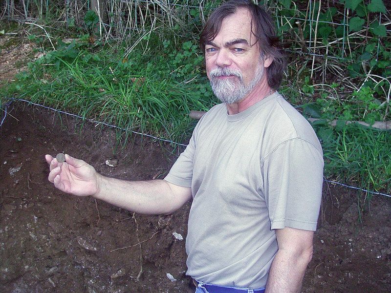I spent my day giving tours to people who decide to come out for a walk and visit the site. Mid-day, just as I said good bye to the first tour group, I heard someone call Phil. There is an unmistakable tone to someone’s voice when they have found something exciting. When I turned around to see what was going on a volunteer was standing up in their trench, holding something small in the air. A Truckle Hill first had been found - a coin! As our tour group had not quite left, they had the opportunity to take a look at the coin just after it was found. We couldn’t have hoped for a more exciting finish to the morning.