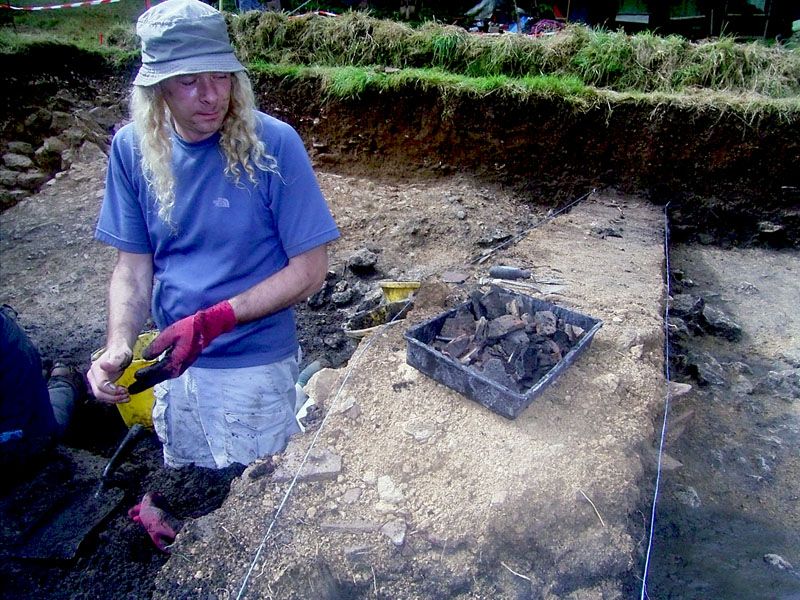 The day’s work concluded, happily, with a new research question: Was there a forecourt to one of the earlier buildings? Despite some rather sticky clay, and some very sooty hands and faces, everyone seems encouraged to have found a new theory to investigate. This week of excavation will hopefully confirm this new theory.
