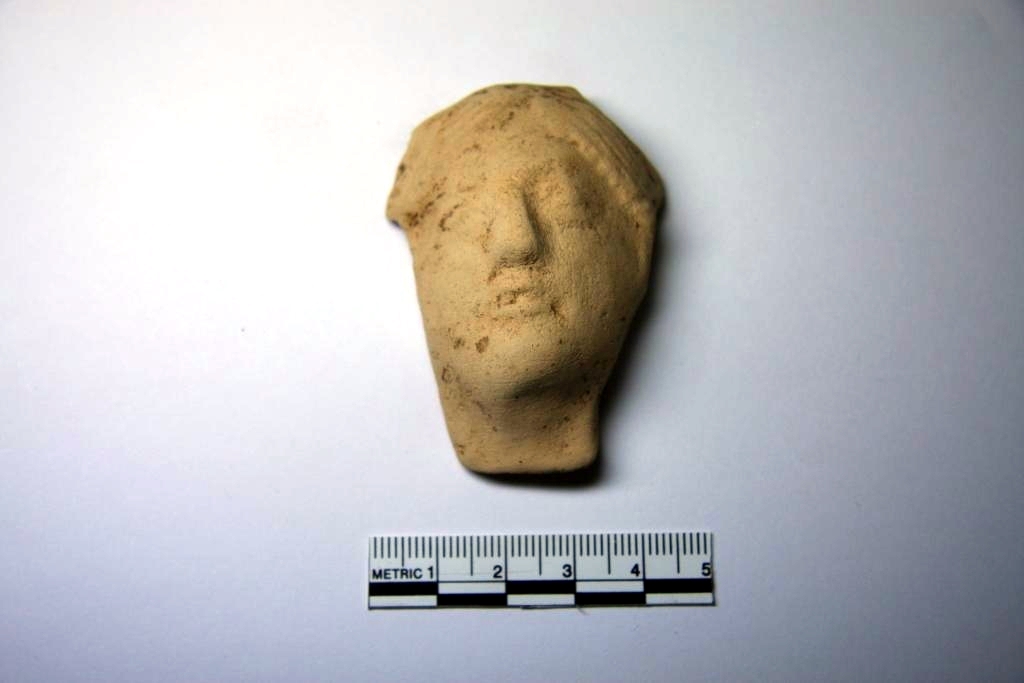 Our largest sites have been large-scale wind farm projects in the East Riding of Yorkshire. Work between Easington and Saltend followed on from our geophysics earlier in the year and discovered prehistoric, Roman and medieval sites, with some interesting finds including part of a jet bracelet, a bone whistle and a decorative face from a Roman flagon (pictured).