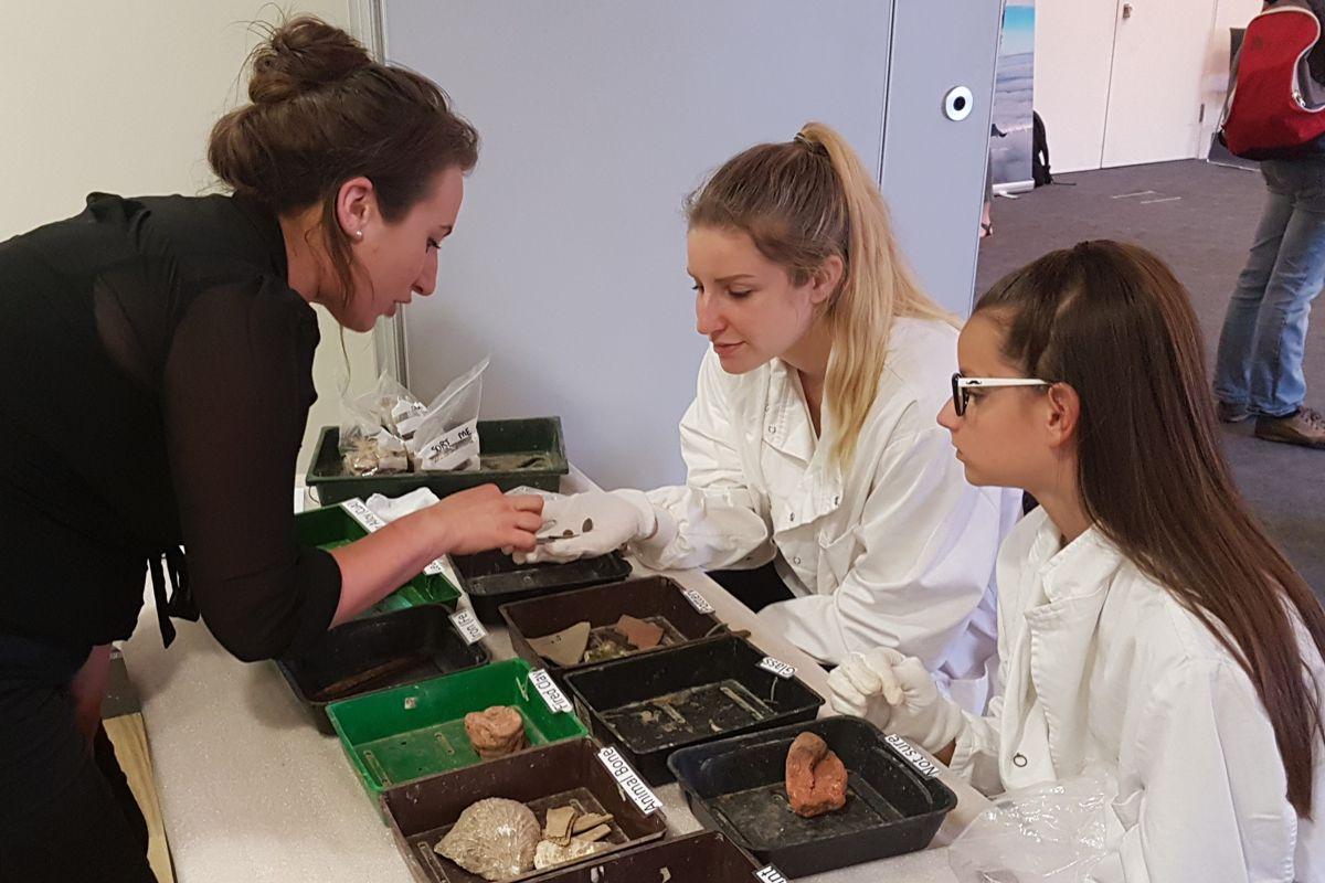Following a ‘guess the environment’ work sheet, visitors were encouraged to scientifically deduce which type of setting (woodland, river or beach) the replica borehole core represented by answering questions based on; sediment type (silt/clay/sand/gravel), colour, shape (rounded or angular), sorting, and inclusions (ie, plants remains or shells).