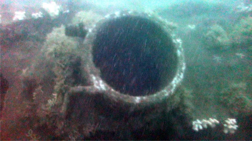 The wreck of the UC-70 was identified as being of possible historical and archaeological importance in a desk-based study of submarine wrecks around the English coast commissioned by Historic England. Then, in 2016, an opportunity arose for Historic England to send a Wessex Archaeology dive team to survey it, part of a wider programme of submarine wreck investigations carried out by us off the North-East coast. Arriving during a rare period of good visibility and using CEFAS geophysical survey data provided through the UKHO, our dive team was able to locate and inspect the submarine over the course of a couple of dives in August 2016. UC-70 was observed to be partially intact and lying upright at 25m depth. Considering how close it was to the coast, it was obviously fairly well preserved and its pressure hull resisting the corrosion that is now causing many First World War shipwrecks to rapidly collapse. However, evidence of what may have been late 20th century salvage was quickly spotted. Much of the bow was missing and a large hole in the stern section of the pressure hull (the part of the submarine that does not flood when it dives and within which the crew live) suggested the violent removal of the stern torpedo tube, probably to obtain its valuable non-ferrous metal.