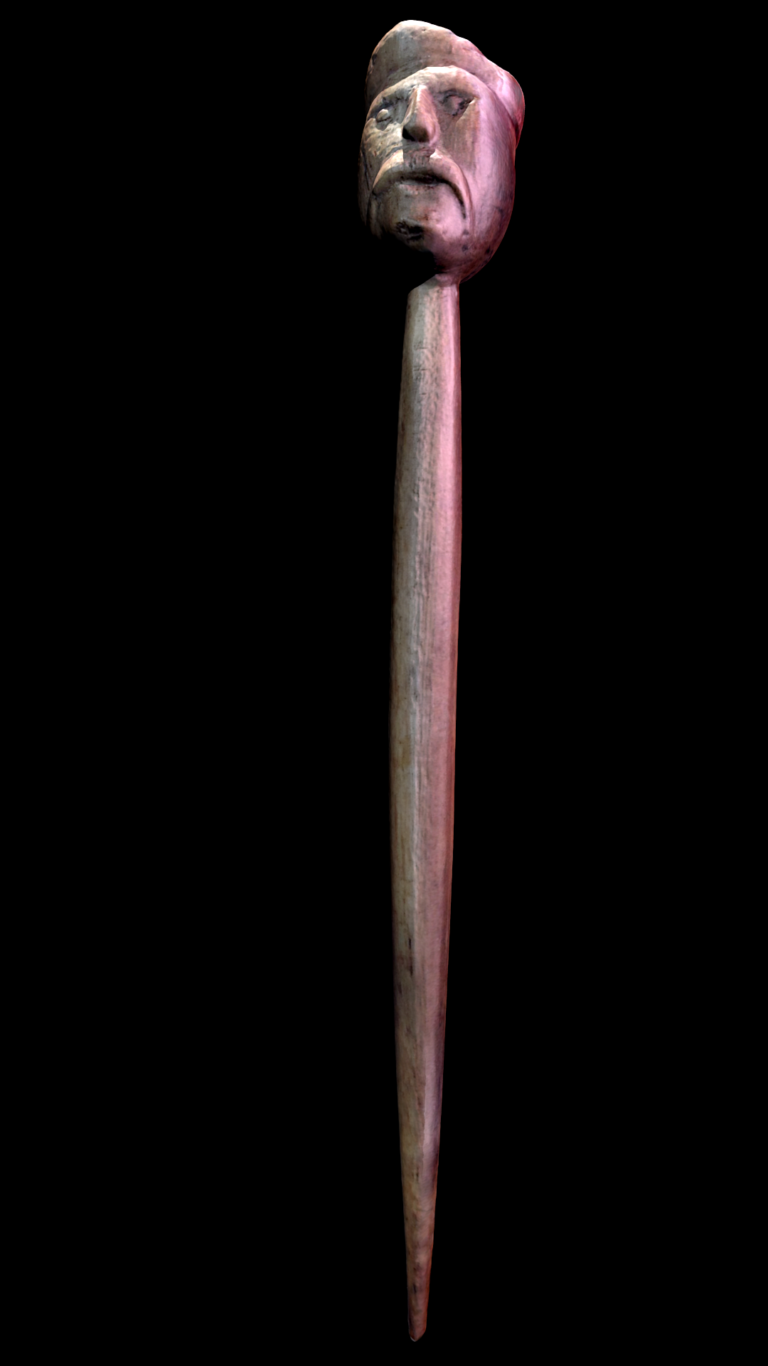 Originally a commemoration of a famous play, Pins and Needles day has now also become a chance to partake in a quirky annual celebration of the sewing world. Our contribution to this is to highlight a recent laser scan we carried out of a Roman bone pin found at South Shields Roman Fort. The head at the decorated terminal is carved in the style of a native British male. The pin is thought to date to the 2nd or 3rd century. The pin was scanned as part of a collaboration with Newcastle University. To see more info and an animated video see our Roman artefact scans blog.