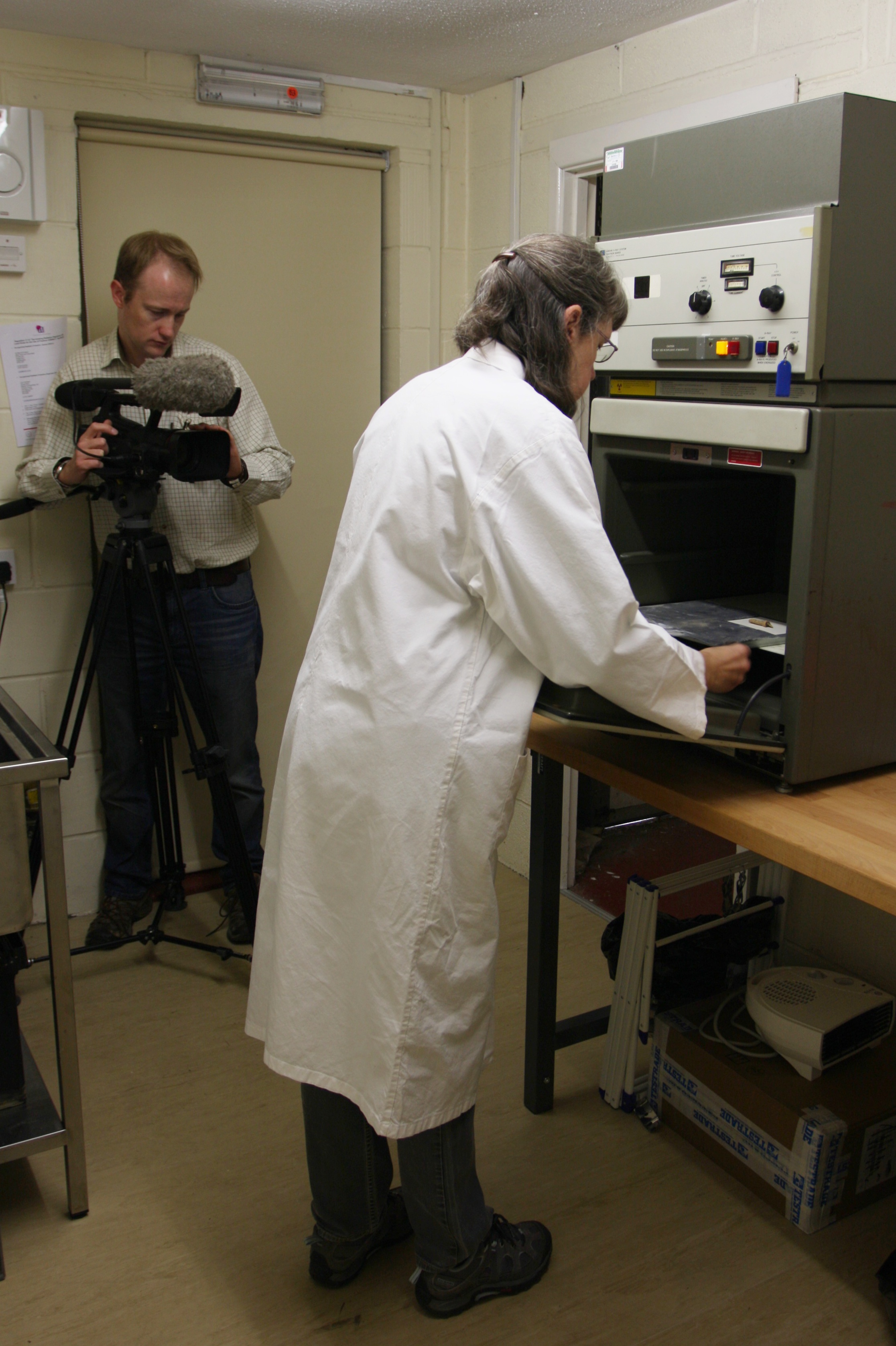 While we thought it unlikely that any objects found could be directly linked to the battle, we were hoping that the objects might at least be medieval – unfortunately one turned out to be a modern cable, and the other a completely unidentifiable corroded lump! However, the exercise proved the value of the X-ray machine, in providing useful information to supplement Time Team’s programme.