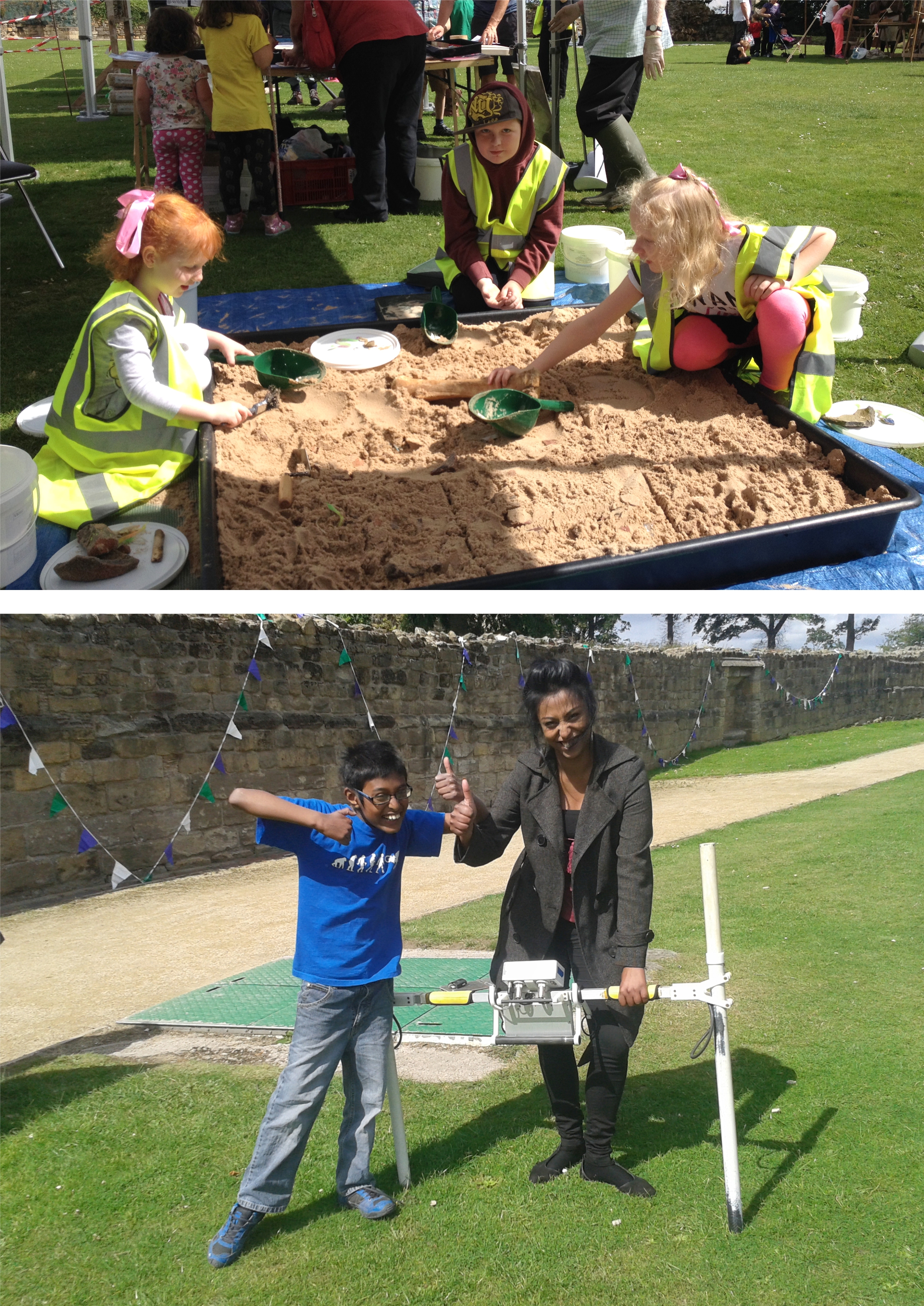 Wessex Archaeology’s Sheffield office had their white roses at the ready for the Yorkshire Day Celebrations at Pontefract Castle on Saturday 1 August 2015. The busy summer season for the community team continued with another outing for the ‘Sands of Time’ sandpit excavation activity. This time, the team were joined by Senior Geomatics Officer, Chris Breeden, who came to show off his ‘machines that go bing’, otherwise known as a Bartington Grad601-2 dual fluxgate gradiometer and a CAT scanner. Chris was on hand to explain to the visitors to the Wessex Archaeology stall how gradiometers are used to undertake surveys to identify the presence of possible archaeological remains below the ground and demonstrate the use of CAT scanners to detect buried cables.