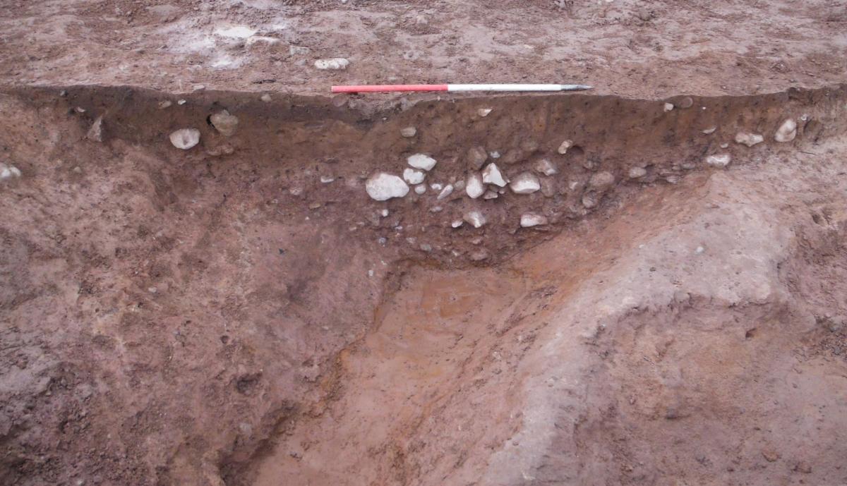 Other features found on the Bucklow Hill site included pits with fire-cracked rocks or iron-smithing slag and undated ditched enclosures, along with a grid of infilled ditches that matched the enclosures shown on 19th-century tithe maps.