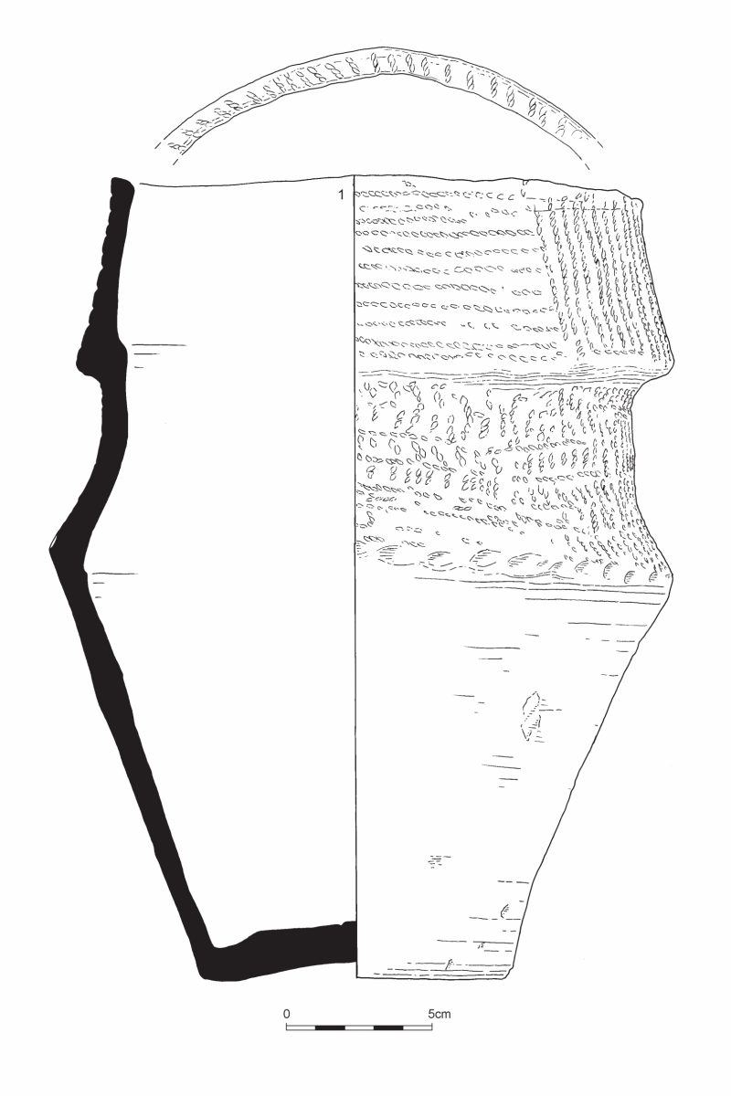 The urn had been used to bury the cremated remains of three youngsters who died in the Early Bronze Age (18th–19th century BC). Nancy’s drawing of the artefact will appear in a publication on the site currently being prepared for the Derbyshire Archaeological Journal.