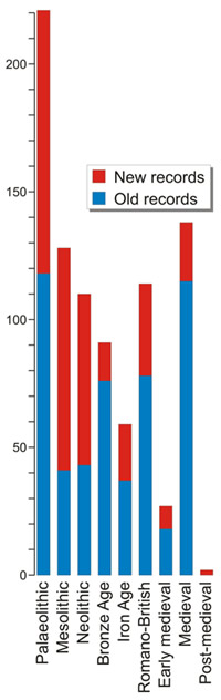 As part of the enhancement process five of the remaining six sites were expanded to produce a total of 14 sites that were added to the project database. These sites range in date from the Upper Palaeolithic to the Medieval period and include findspots of Upper Palaeolithic artefacts, a Neolithic stone tool production site, Bronze Age barrows and Medieval burials.