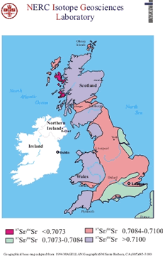 The strontium isotope composition of tooth enamel can provide information about where an individual spent their child hood. Strontium isotopes provide a fingerprint for different rock types and, as the distribution of rocks is well mapped in Britain and around the world, the geology provides the key to geographic location.
