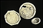 These two pewter plates and the smaller, deeper dish are likely to have been deliberately buried as a "hoard", for safety and later retrieval.