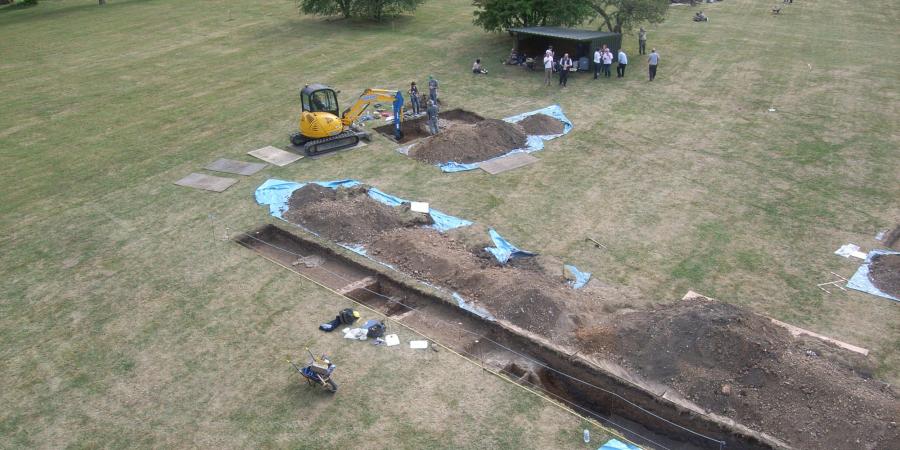 The geophysical survey by GSB Prospection (which expanded upon earlier work by Tim Dennis, University of Essex) revealed the layout of the Priory, including the Priory church, and the domestic structures centred on a southern cloister, and also showed the location of the post-Dissolution mansion which was demolished c. 1820. The evaluation consisted of five trenches. Results from these showed that the main Priory church had been constructed in a single phase, and was accompanied by a number of inhumation burials on the north side of the presbytery. A sample of bone from one of these burials was radiocarbon dated to AD 1040-1260. While this could conceivably belong to an earlier, pre-Priory phase, perhaps associated with a Late Saxon minster, the likelihood is that all the burials belong to the early years of the Priory.