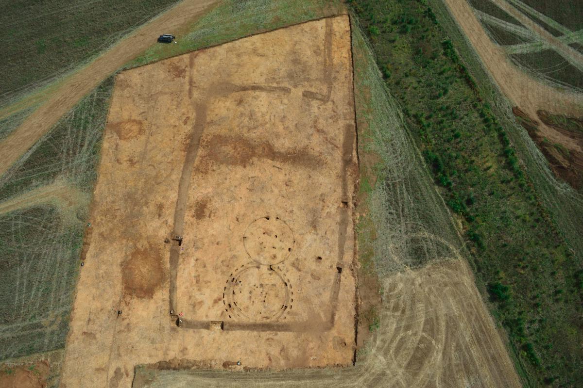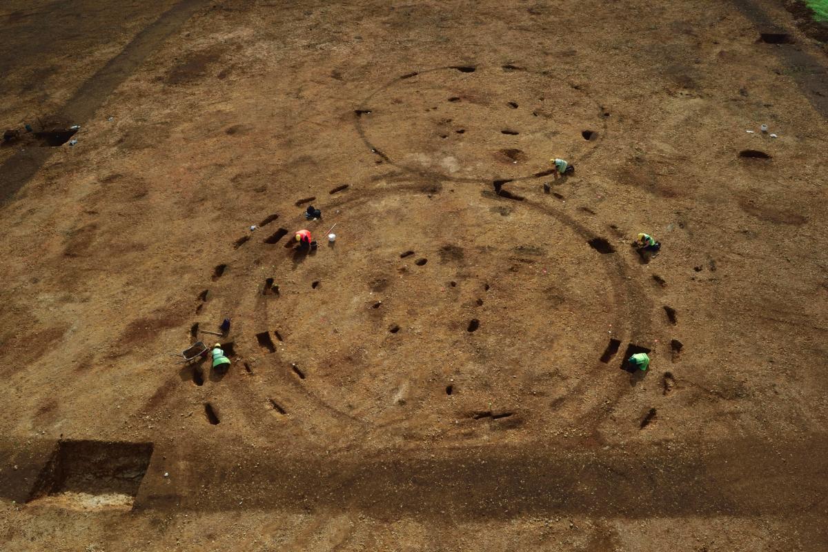Area 1 contained a sequence of three roundhouses. The first two may have been built in open country, whereas the third lay within a 0.3-hectare rectangular enclosure defined by a substantial ditch and probable internal bank. In a clear indication of the development of the settlement, the second roundhouse had been cut through by both the enclosure ditch and the third roundhouse. Pottery and radiocarbon dates indicate the settlement spanned the transition from the Early to Middle Iron Age.