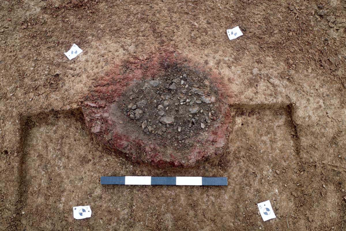 Within Area 2, two furnaces, field boundary ditches and a cluster of pits were exposed. Both furnaces contained the type of slag produced during the smelting of iron ore to produce useable metal; pink scorching visible on the earth surrounding the furnaces illustrates the high temperatures involved. Although no dating material was obtained from the furnaces, the presence of ore and smelting debris in other, better-dated, features in Areas 1 and 2 suggests that iron was being made on the site sometime during the period between the 5th and 2nd centuries BC.