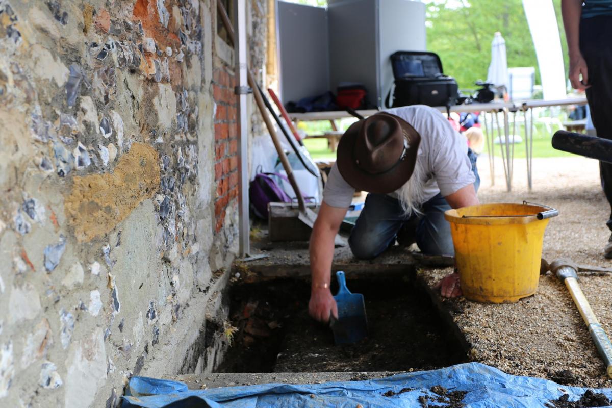 Excavations continued in 2018 to maintain public involvement and focussed attention on the wall foundations of the former extension to the north range depicted by John Buckler in 1804.