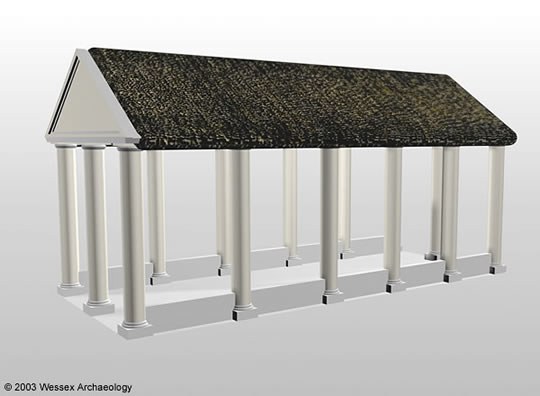 Across the pool from the sanctuary complex was another temple excavated by Wessex Archaeology. This was built of stone, had a central tower and tiled floors, and traces of wall painting survived.