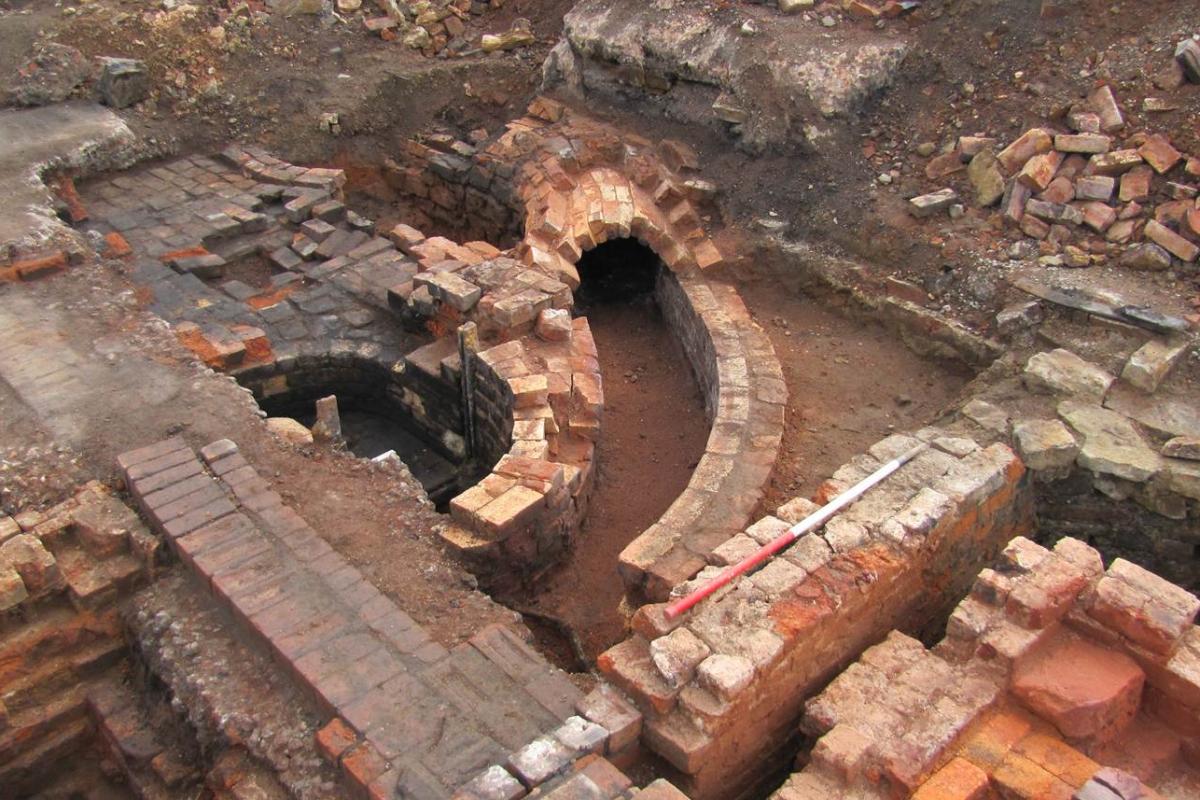 Working in collaboration with the South Yorkshire Archaeological Service, archaeological advisors to Sheffield City Council, our early works involved undertaking historic building recording followed by a scheme of archaeological evaluation trenching. This discovered that substantial historic remains relating to the site’s steel working past survived beneath the modern buildings. Open area excavation revealed well-preserved industrial archaeology comprising steelmaking furnaces and a network of brick-built flues, along with traces of the workers’ housing and their local pubs (The Cock, and The Orange Branch). A wide range of finds was collected, indicative of both the technical details of the industrial processes taking place, but also the everyday lives of Sheffielders who lived and worked at Hollis Croft in the past.