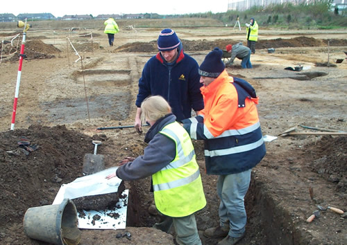 This area of excavation contained the earliest archaeological evidence from across the whole modern development. There were clusters of middle Bronze Age (1500-1100 BC) pits which may represent a small episode of human activity close to a palaeochannel some 3500 years ago.