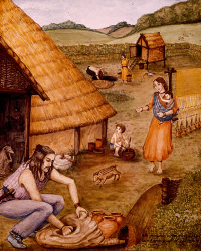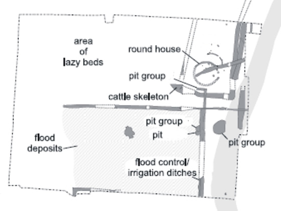 During the Iron Age the area was still used, although perhaps by fewer people, indicated by a small number of pits and gullies as well as an area of lazy beds. Most importantly, it is in the late Iron Age that the first evidence of a permanent settlement is found, a round house.