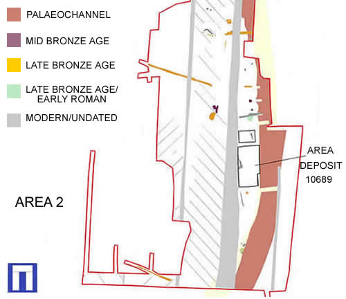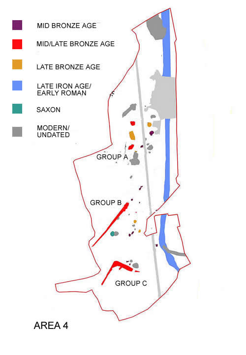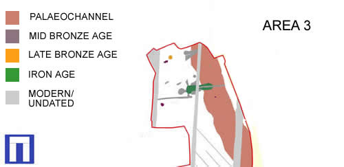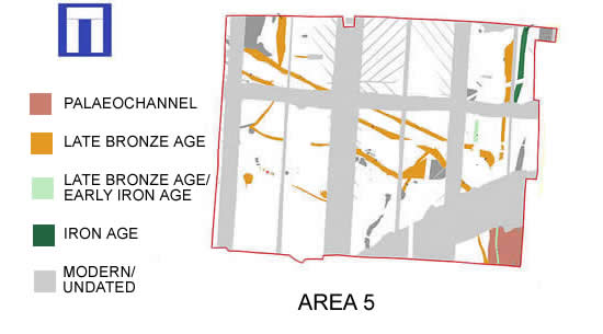 The area is of great interest due to the presence of an unusual deposit which could have been a midden. This built up over a long time and contained pottery, human bone, animal bone, bone tools and flint tools of middle and late Bronze Age types. Bronze Age activity within the area continues right through into the later part of the period (up to 700 BC) with two small ditches being dug to define the area around the midden.