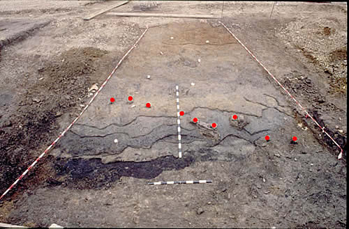 A concentration of pits, post-holes and ditches indicates activity over a long period of time. However, a lack of houses suggests this may just have been seasonal encampments. Adjacent to the stream was an unusual area where soil had gradually accumulated, containing quantities of pottery, human bone, animal bone, bone tools and flint tools of Middle and Late Bronze Age types. Ongoing analyses will determine if this is a midden.