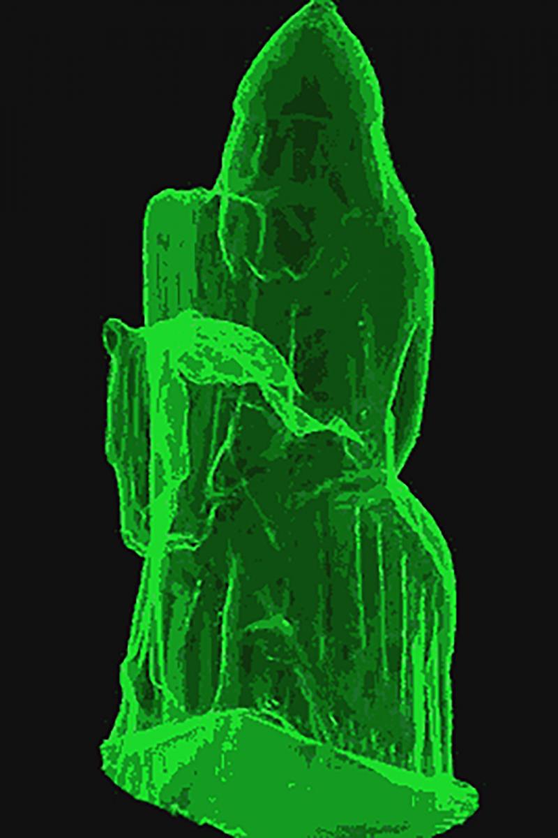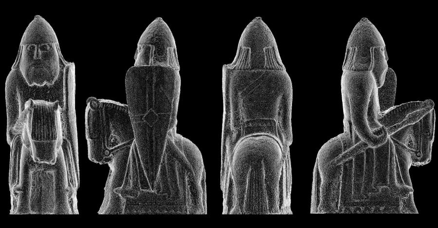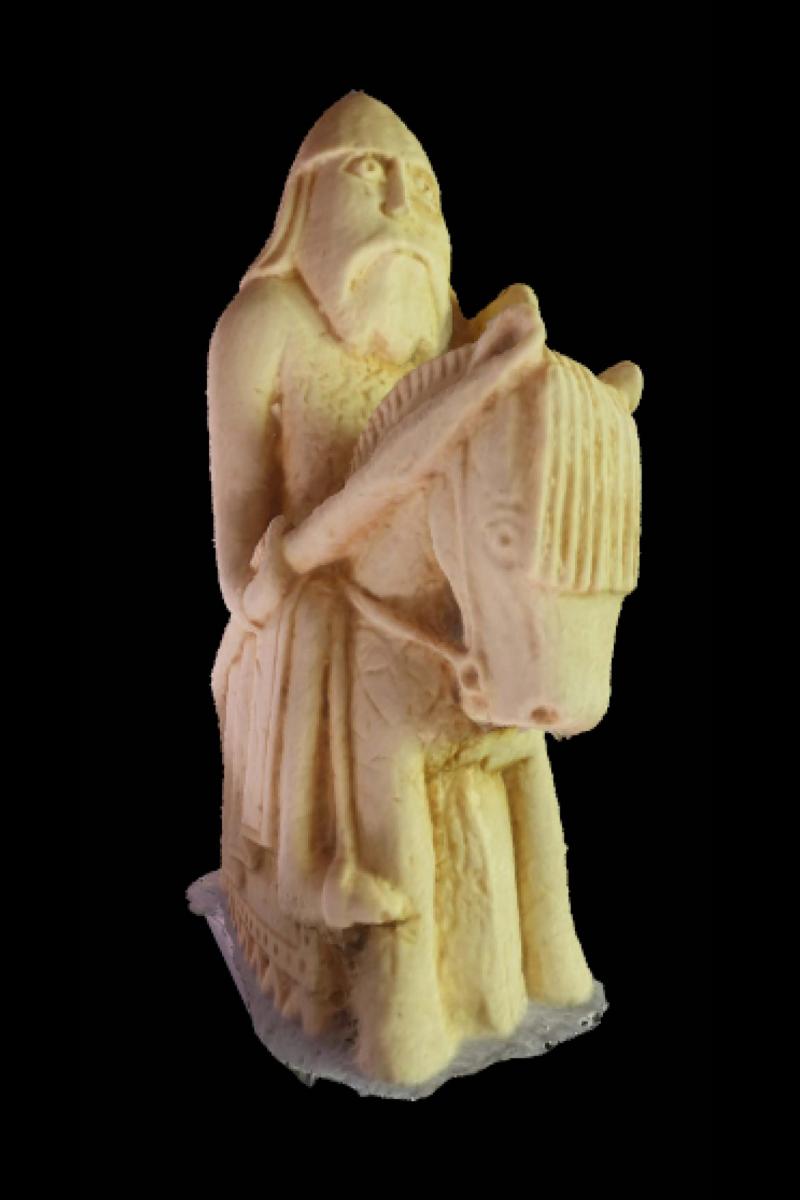 This scan is of a replica night from the Lewis Chessmen, a set of 93 gaming pieces found on the Isle of Lewis in 1831. The chess pieces are carved from walrus ivory and whale’s teeth and are thought to be Scandinavian in origin. Some are held in the British Museum and some in the National Museum of Scotland.