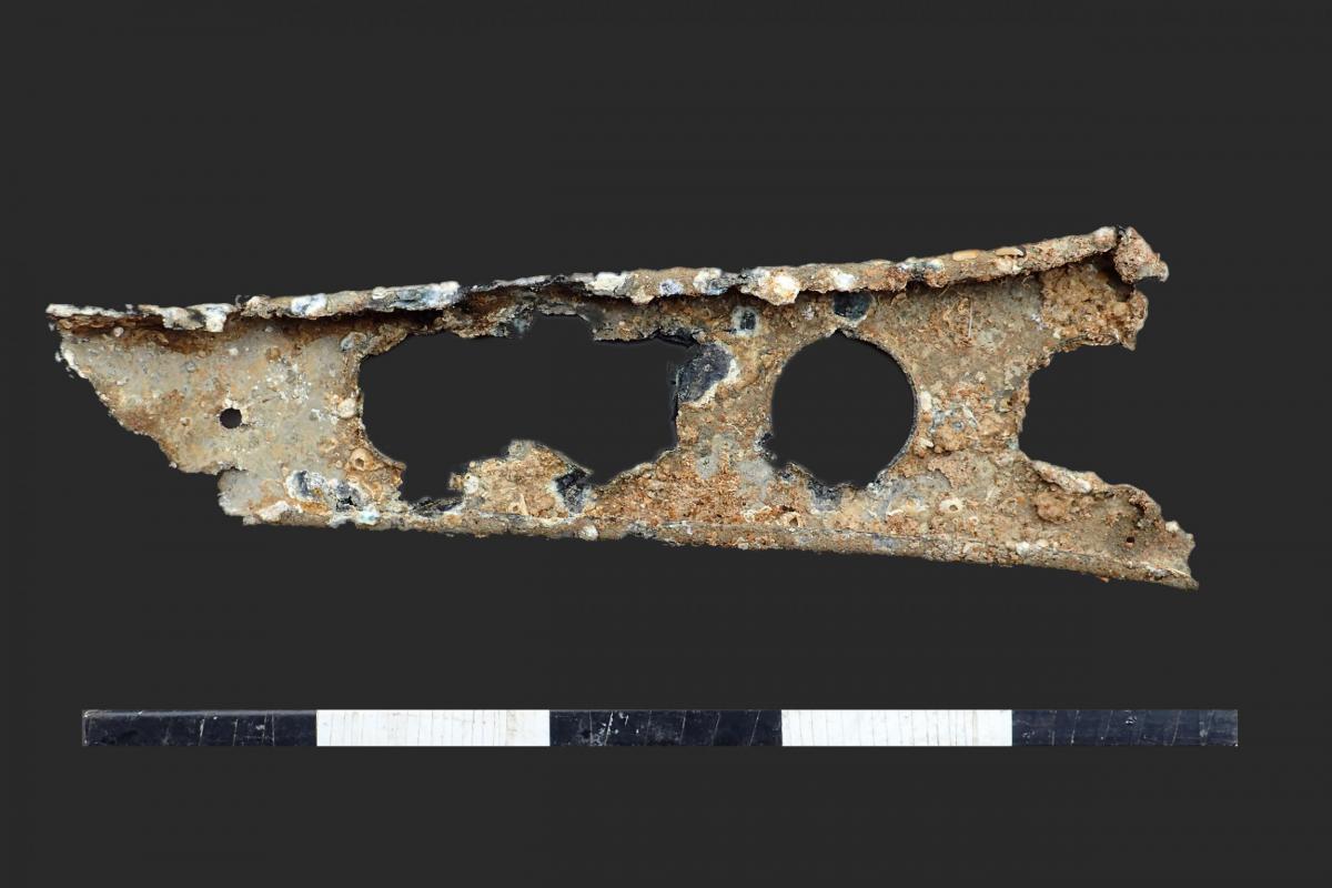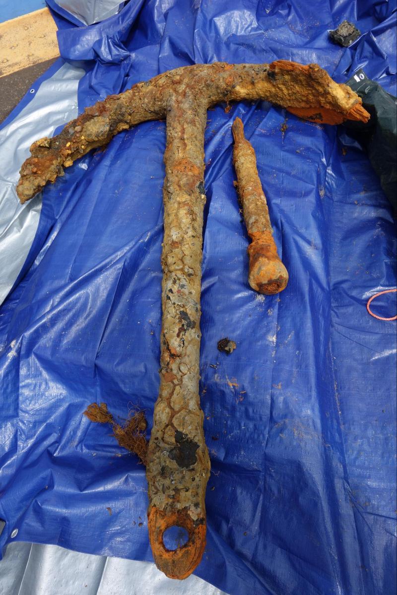 Many of these turned out to be unexploded ordnance related to World War II, but during clearance operations a range of archaeological finds were also encountered. These included several anchors from the 19th and 20th centuries, some wooden shipwreck material and metal banding from the hull of a late 19th century fishing vessel, fishing gear and small pieces of aircraft debris.