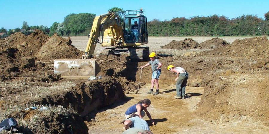 evaluation by Channel 4’s ‘Time Team’ at the Northborough Neolithic causewayed enclosure, Cambridgeshire (centred on NGR 515570 308450). The site, identified from cropmarks in 1996, has had no previous work undertaken, but lies just 1.8km east of the excavated causewayed enclosure at Etton. The main aim of the evaluation was to ascertain the character, date and condition of the site, as well as the extent of preservation and waterlogging in the ditches. The work was carried out from 7th-9th September 2004.