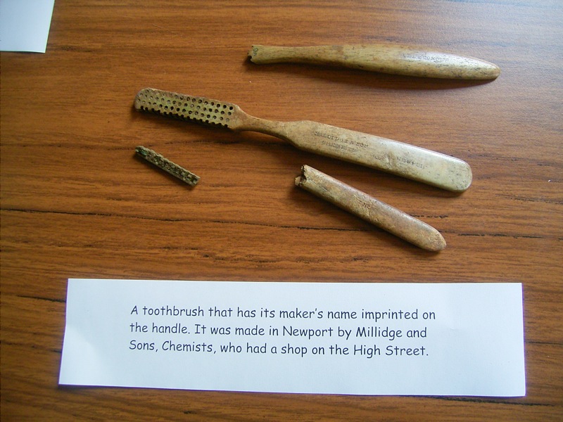 They found lots of pieces of coloured glass, animal bones, pottery, and even a polished bone toothbrush labelled ‘The Economist'.