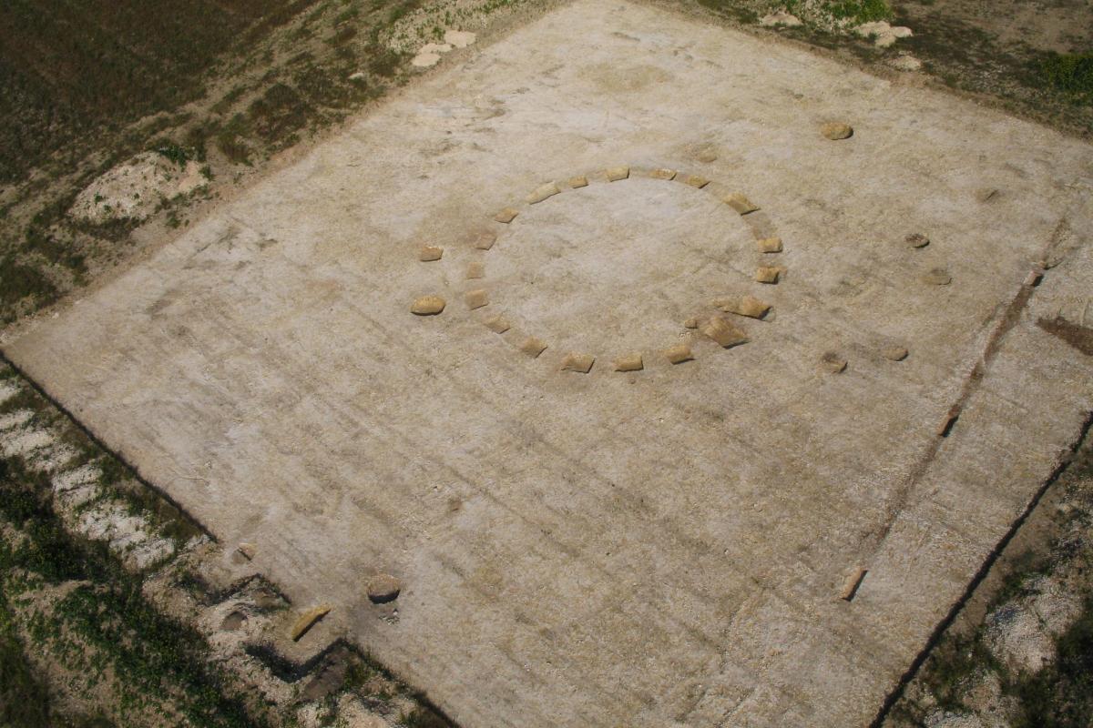 Radiocarbon dating tells us that approximately 4000 years ago (ie, in the Early Bronze Age) a woman who had died in her thirties was buried next to a large, possibly contemporaneous, monument that included a large ring-ditch.
