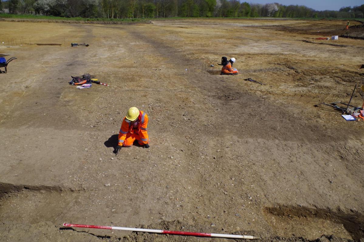The site has already been subject to a number of archaeological investigations including a desk-based assessment, air photo assessment, geophysical survey and trial trench evaluation. The earlier evaluation work indicated that a Romano-British farmstead may have occupied the southern edge of the site and is due to be excavated in future seasons. At the north-western edge of the quarry, ditches, pits and an oven suggest further Romano-British (AD 43–410) activity lies just beyond the edge of the site.