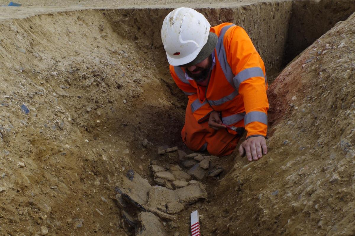 Also, shown on historic mapping is the route of Whites Lane, the lane is shown on maps dating back to 1752. The lane is still in use today to the south of the M4 as a residential street and its course is shown on historic maps running across the north-west part of the quarry. Archaeologists discovered that Whites Lane was preserved below the topsoil as a metalled surface flanked by two ditches.
