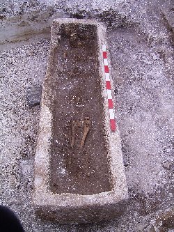 A Roman stone coffin, probably dating to the 3rd or 4th centuries AD, was discovered in archaeological excavations in advance of the Poundbury Stages 3-4 development at Poundbury Farm, Poundbury, Dorchester.