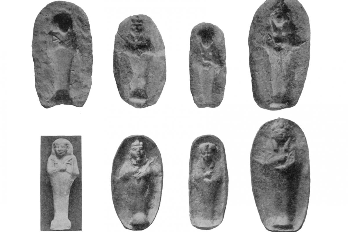 Right: Shabti moulds found by Griffith at Sanam
