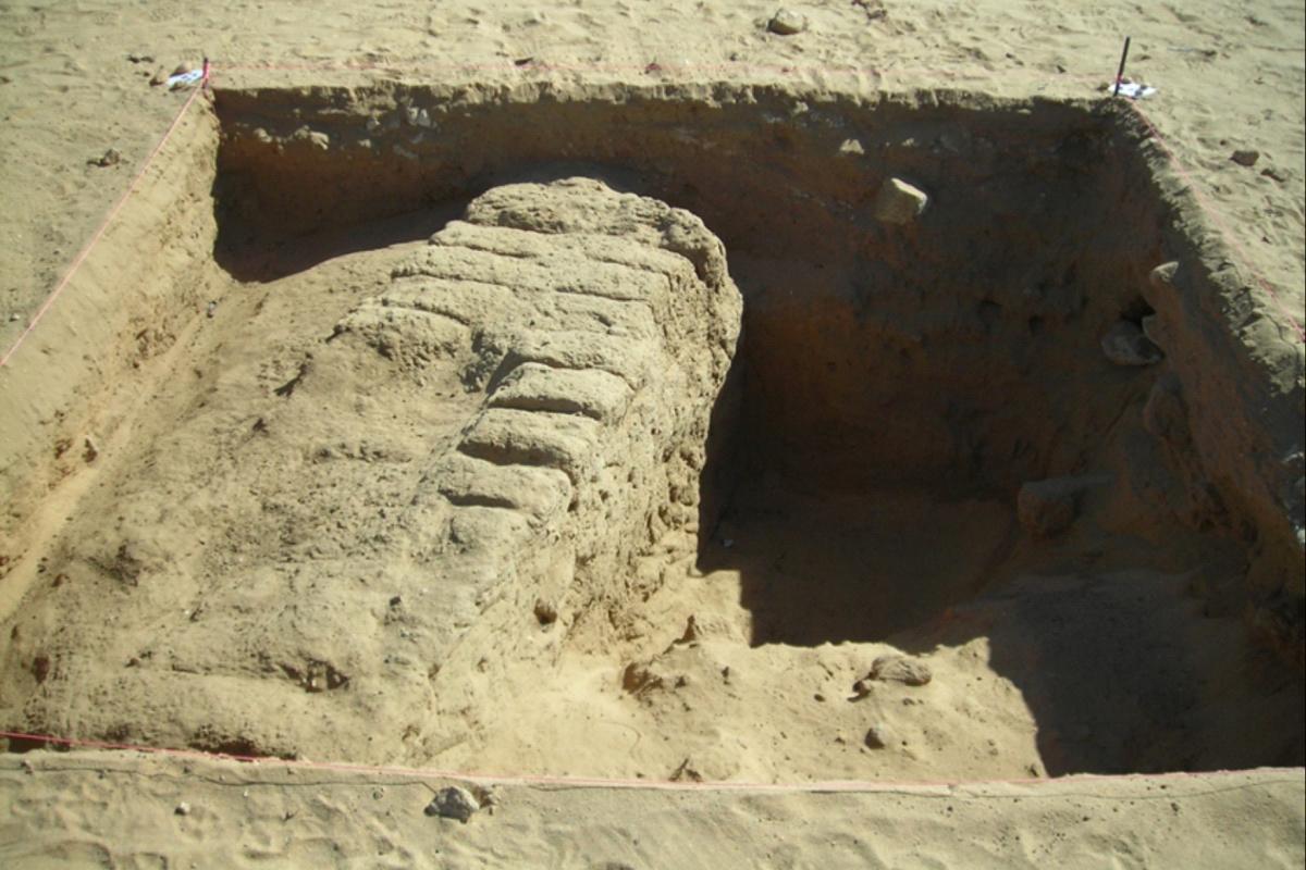 Mudbrick walls dividing the temple courtyard into smaller rooms. Image courtesy of Dr Kathryn Howley (NYU)