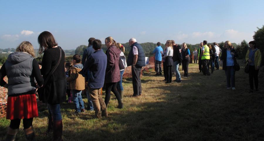 The Sherford Consortium, the network of homebuilders responsible for the development of the Sherford new community, commissioned Wessex Archaeology in collaboration with AECOM to organise and host a community open day at the Sherford site. The objective was to allow the public and press to see the archaeological works in progress and through doing so add value to the new South Hams community, by generating understanding around how the landscape and peoples have changed over time and fostering a sense of place through shared heritage assets.