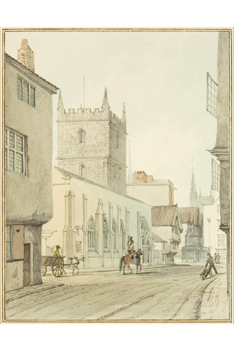 Above: St Peter's Church from the north-east, by T. L. Rowbotham, 1828. Reproduced with permission of Bristol Museum and Art Gallery (ref. M2666)