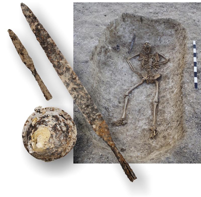 The Anglo-Saxon cemetery consisted of around 55 burials, with men, women, juveniles and infants all present. The grave goods, which are consistent with a late 7th- to 8th-century date, included spears, knives, a shield boss, bone combs and pins, buckles, jewellery and a finely decorated bronze workbox.