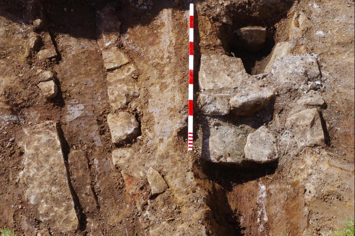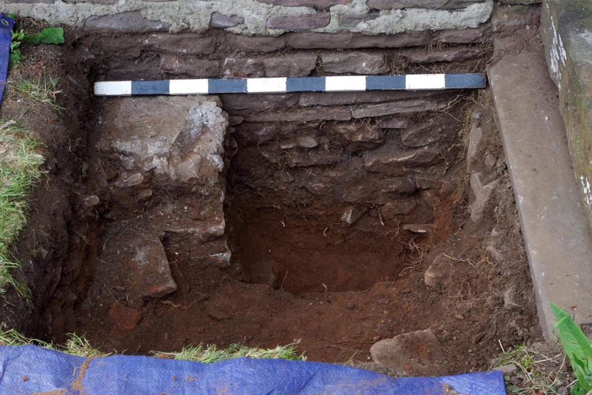 The three trenches excavated south of the barn, contained no evidence for the suggested moat ditch. Instead, undisturbed early medieval soils were revealed, which had been cut by a small drainage ditch and a larger boundary ditch. These are likely to date to the later medieval or early post-medieval date. The trench closest to the barn (Trench 1) revealed another drainage ditch containing 12th- to 14th-century pottery, including Ham Green Ware and a single sherd of Redcliffe Ware, suggesting this ditch was likely to have been contemporary with the building of the Barn. The ditch was later replaced by a series of 18th- and 19th-century stone-lined drains.