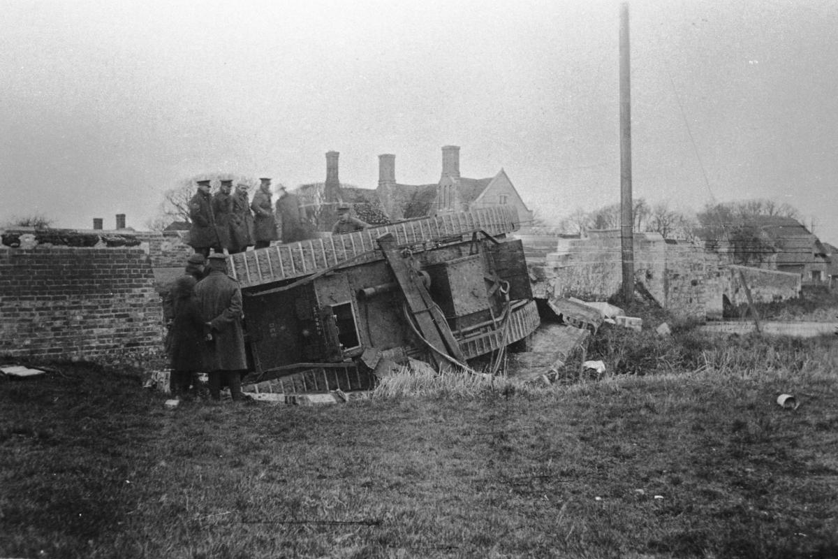 Perhaps unsurprisingly, regular crossing by 25−30 tonne tanks led to damage in 1917 and 1918. A photograph of the time shows that the crew of one Mark V tank named ‘Dee’ had a lucky escape after crashing through the parapet and ending up on the bank. In order to prevent a similar scenario, the parapets were entirely removed during the Second World War and only reconstructed in the early 1960s.