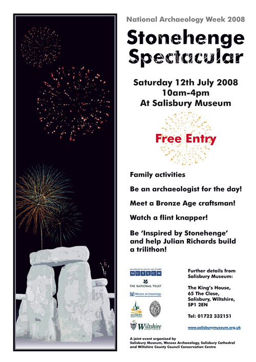 This event is brought to you by Salisbury Museum, Wessex Archaeology, The National Trust, Salisbury Cathedral and Wiltshire County Council’s Conservation Lab who have joined forces to create this Stonehenge Spectacular!